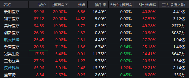热点方面,脑机接口概念继续大涨,多只个股涨停。其中,爱朋医疗、翔宇医疗连续两日20%涨停,美好医疗19.99%涨停、创新医疗10.02%涨停。